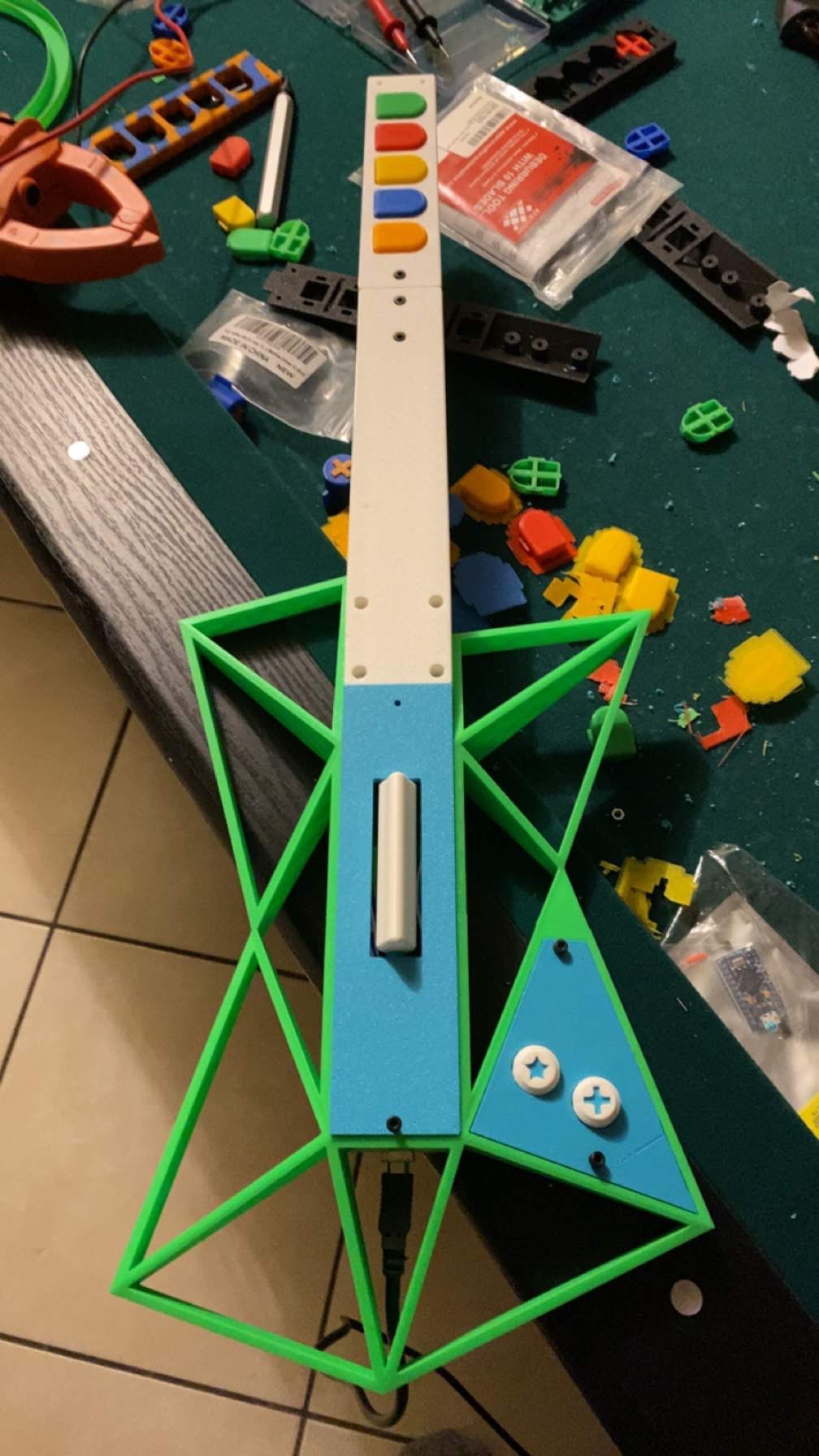It might surprise you to learn that original Guitar Hero controllers are fairly expensive online. Even used ones covered in stickers cost upwards of seventy dollars. To create some good old fashioned nostalgia, I decided to build my own guitars. While I cant take credit for the 3D model designs, all the printing and electronics was done by me. I made 4 guitars in total, for my roomates and I to play in multiplayer. I am happy to say that they work perfectly. This is one of my favorite projects I have made to date.
